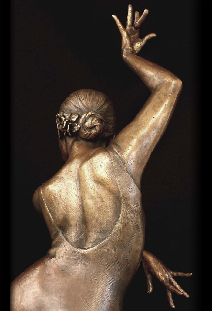 Amity, who is one of our best local flamenco dancers, with a fun and cheeky personality, was my primary inspiration for this piece, although there were 3 models in all. She spent many hours teaching me about this form of dance, and went through the movement, time and again so I could study the tension of the muscles as she passed through the kick.