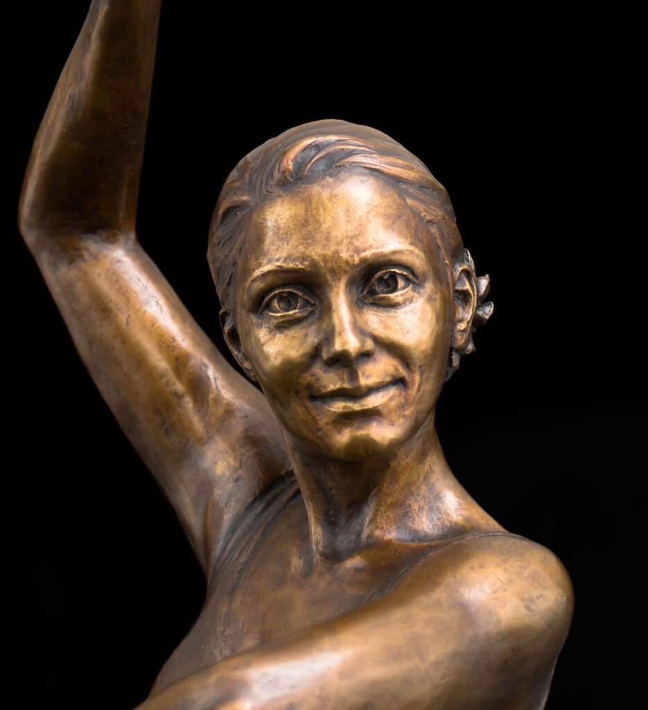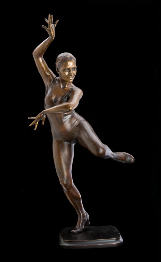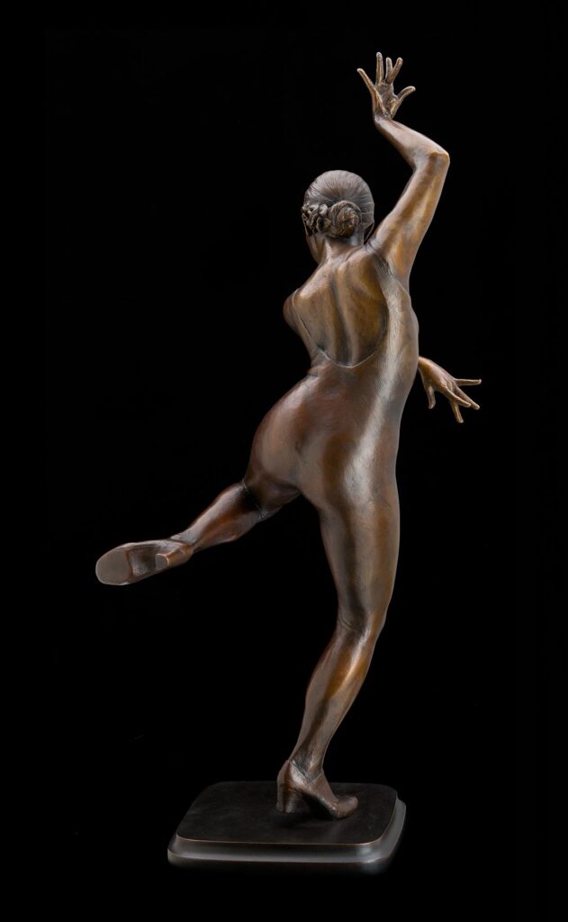 I had originally wanted to sculpt her with her dress floating above her foot, but discovered that the lines of the sculpture and form of the anatomy needed to be uninterrupted, so Amity’s practice leotard became the perfect way in which to express this.